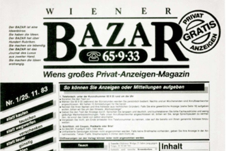 Bazar“ feiert Geburtstag. Die Kleinanzeigen-Zeitung für Second-Hand-Artikel vielerlei Art, Raritäten und Immobilien besteht seit 40 Jahren. Seit 2019 gehört sie zur Mediaprint. Zuletzt wurde sie beispielsweise um ein Outlet für Markenartikel erweitert.